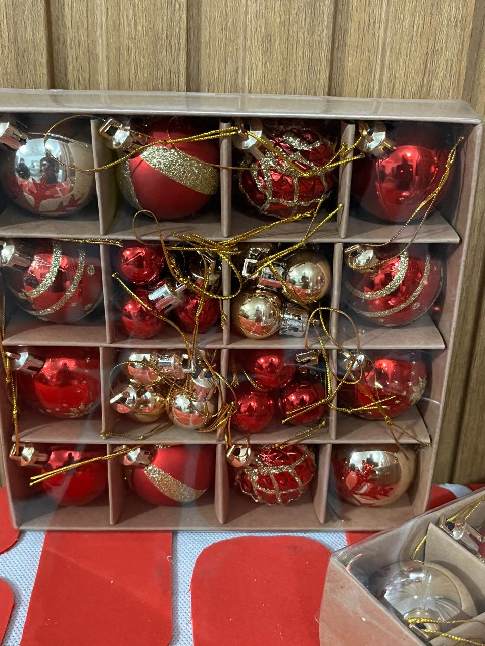 Kit completo com 36 bolas natalinas de 4cm nas cores vermelho e ouro. Combinação clássica e atemporal que traz o espírito tradicional do Natal. Quantidade ideal para decorar árvores de médio a grande porte.