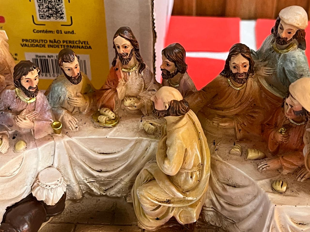 Peça decorativa em resina que retrata uma cena clássica de ceia natalina, perfeita para compor arranjos temáticos ou vitrines festivas. Com dimensões de 19,5 x 8,5 x 9,8 cm, oferece proporção ideal para prateleiras, mesas de centro ou displays sazonais. O acabamento em resina garante durabilidade e detalhes refinados, mantendo a elegância característica da decoração premium de Natal. Ideal para colecionadores e para presentear quem aprecia peças que combinam tradição e sofisticação na ambientação festiva.
